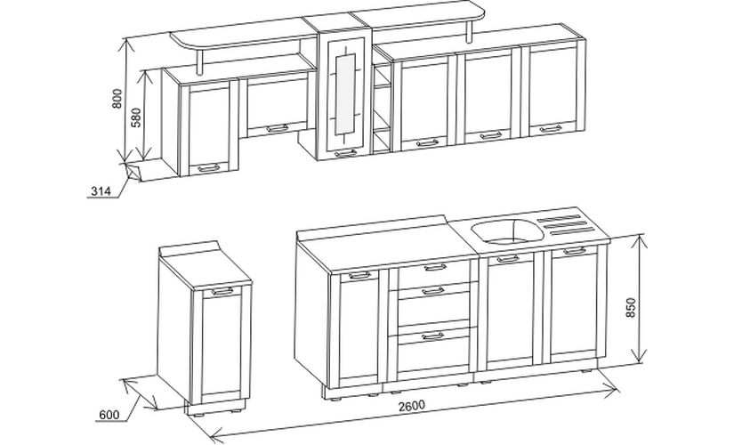 В стоимость кухонного гарнитура "Дельта" входит: каркас+фасад, столешница (пластик "ракушка", "колорадо"), пристеночный профиль.