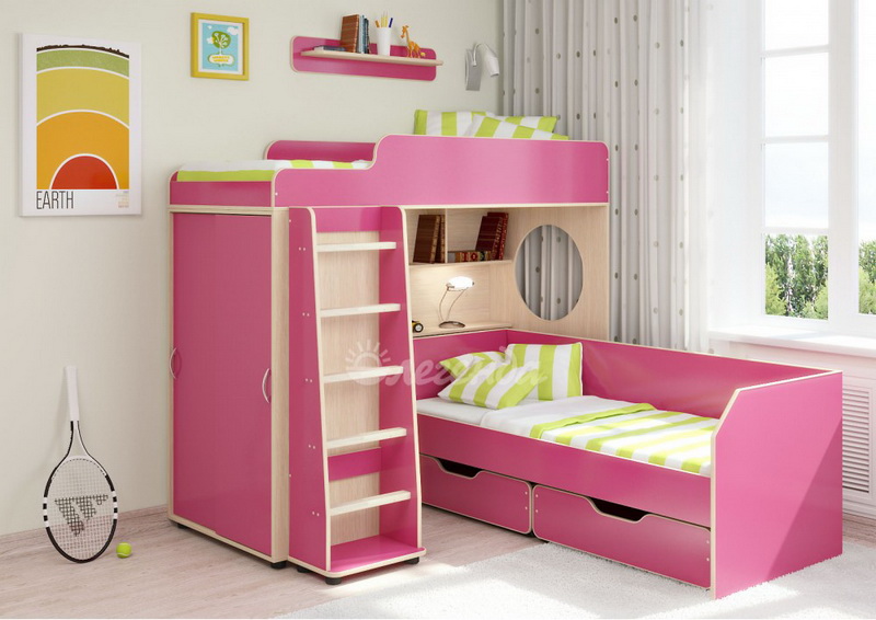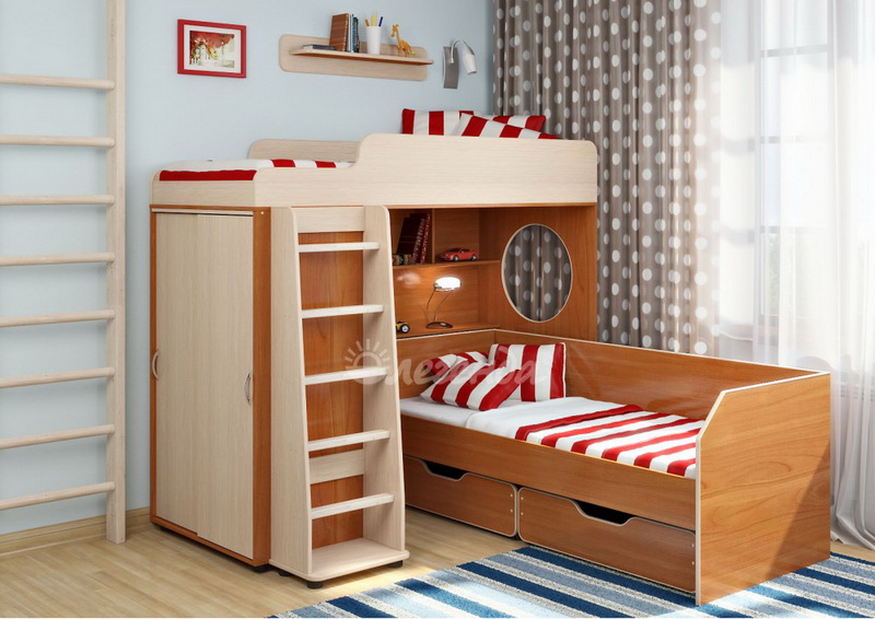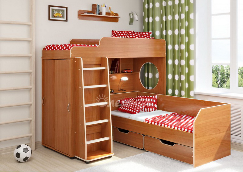 Двухъярусная кровать с двумя большими перпендикулярными спальными местами размером 1900х800.