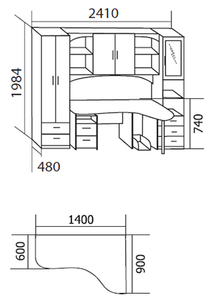 • Длина: 900 мм (по столешнице);