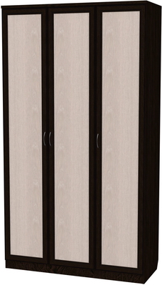 Большой практичный шкаф, который имеет в своем составе отдел со штангой, а также отсек с полками. Благодаря тому, что этот шкаф оборудован зеркалами и имеет небольшую глубину, он вполне может использоваться в прихожей или небольших комнатах офиса.