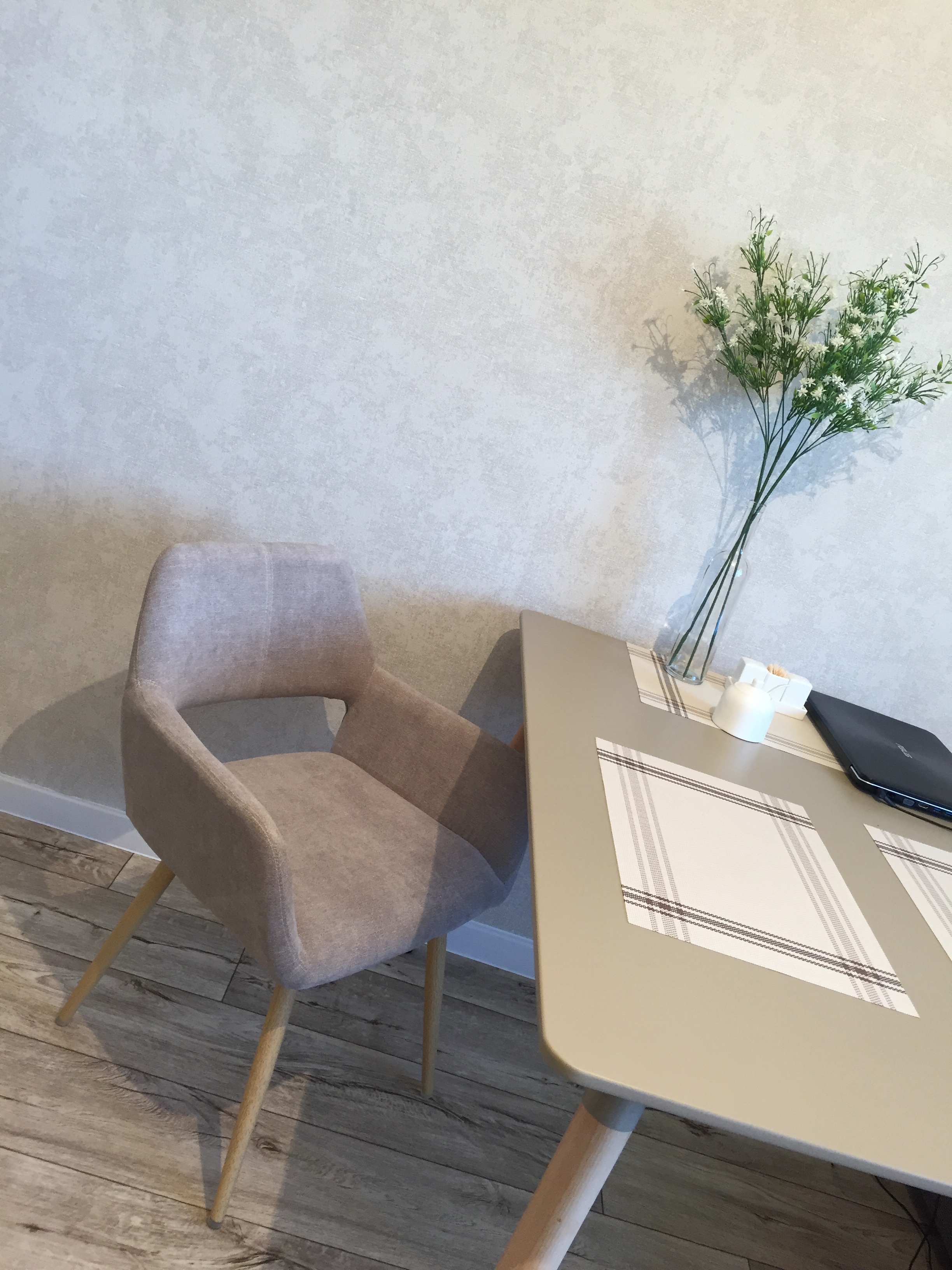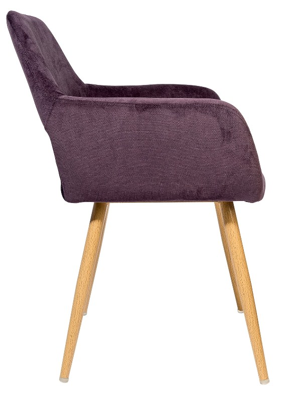 Стильный и мягкий стул имеет широкую эргономичную спинку и удобные подлокотники. Обивкой послужила высококачественная плотная ткань. Ножки стальные с принтом под дерево.