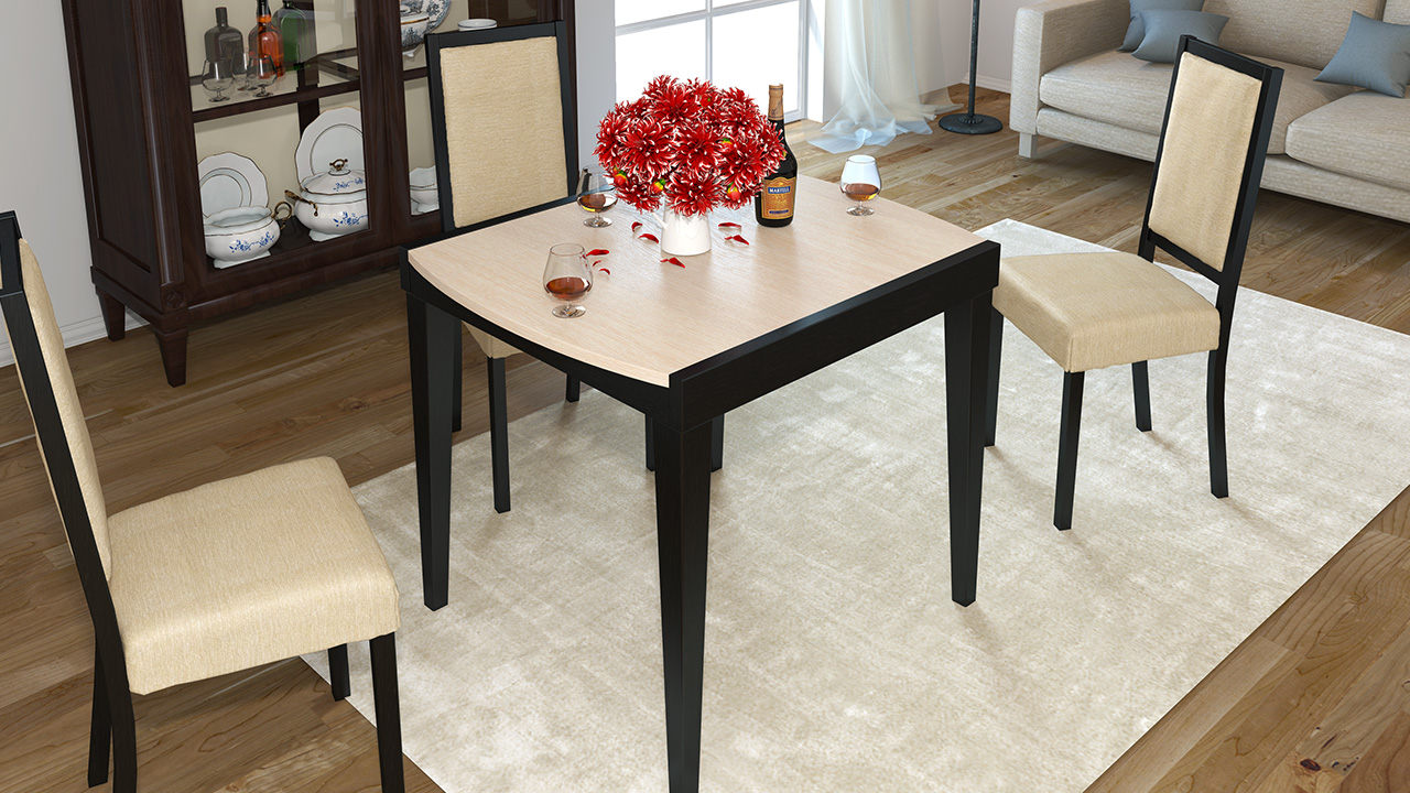 Столешница из матового стекла и венге каркаса создают контрастный декор этого раскладного обеденного стола. Небольшой, изящный с характерными для серии "Танго" скругленными торцами. Хороший выбор для столовой или кухни в современном стиле.